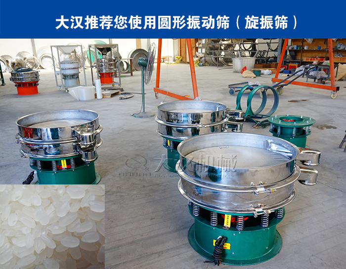 以上就是對大米圓形振動篩的介紹,如果您在篩分方面還有疑問歡迎致電大漢機(jī)械,我們將安排專業(yè)人員為您一對一進(jìn)行解答,想要選購或了解大米振動篩的廣大用戶也可以隨時咨詢大漢,我們24小時為您服務(wù)~