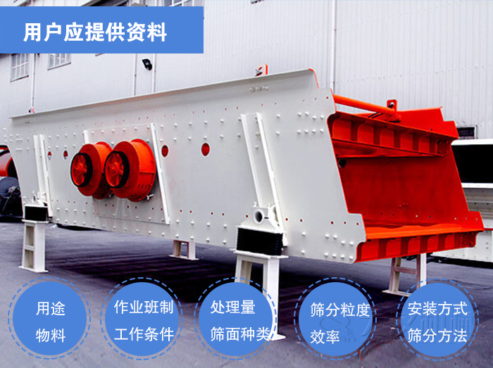 ①篩子的用途。② 物料特征 包括:種類、散密度、水份、顆粒形狀、粒度組成、大給料、粒度、物料粘度。③ 作業(yè)班制。④ 處理量。⑤規(guī)定粒度及相應(yīng)的篩分效率。⑥篩分方法(濕篩或干篩)。⑦安裝方式。座或吊式,電機(jī)左裝或右裝。⑧希望使用的篩面種類 ⑨希望使用的振動(dòng)篩種類。⑩ 工作條件:如空間大小、環(huán)境溫度、防塵要求等。